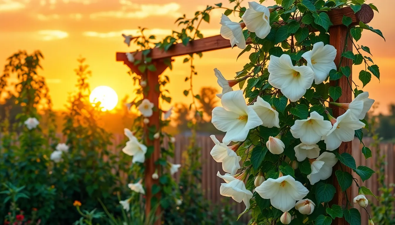 These captivating plants aren’t just a pretty face; they’re low-maintenance and thrive in the evening glow, making them perfect for those who want to add a touch of elegance without the fuss. Whether you’re a seasoned gardener or just someone looking to impress your neighbors, moon flowers are the secret ingredient to elevating your nighttime garden game. So why not let your garden shine brighter than a full moon?